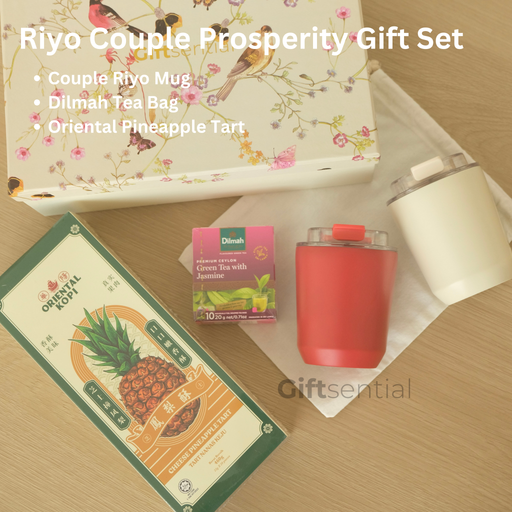 Riyo Couple Prosperity Gift Set: 2 pcs Riyo Mug 1 box Oriental Pineapple Tart (Nastar Oriental Malaysia), 10 pack (20 pcs) 1 box Dilmah Green Tea ...