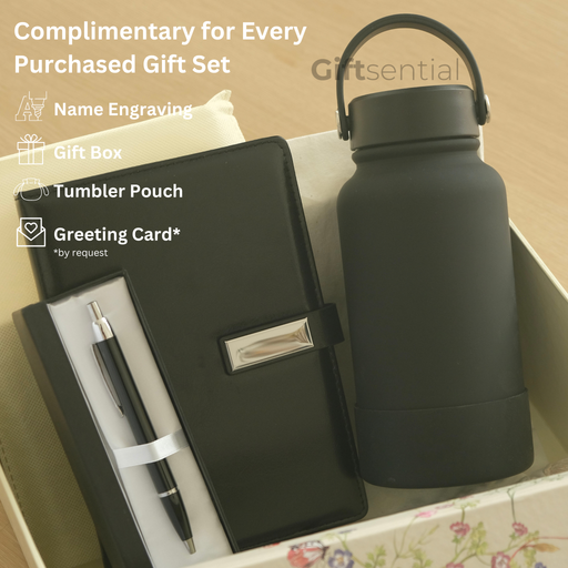 Daily Essential Gift Set: Basic Tumbler in Black Earl Rollerball in Gold Stainless Steel Cutlery Set Sudah termasuk: Custom grafir pada produ...