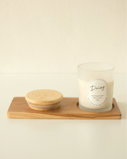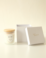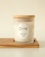 Daisy Home Scented Candle, terbuat dari perpaduan soy wax candle dan fine fragrance oil yang siap untuk mengharumi ruangan saat dinyalakan.