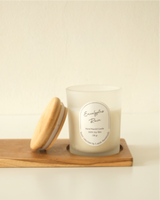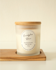 Eucalyptus Rain Home Scented Candle, terbuat dari perpaduan soy wax candle dan fine fragrance oil yang siap untuk mengharumi ruangan saat dinyalakan.