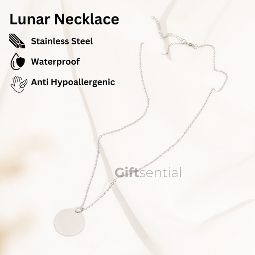 Lunar Necklace, kalung dengan liontin berbentuk koin dengan ukuran besar serta bisa ditambahkan ukiran tulisan nama kamu dikedua sisi liontin. Terb...