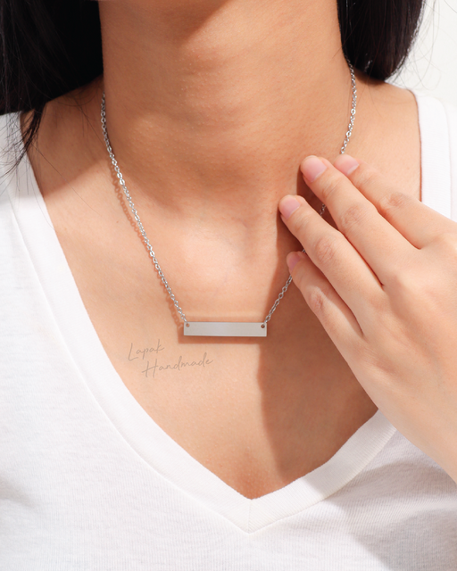 Classic Necklace, kalung dengan liontin klasik persegi panjang yang bisa ditambahkan ukiran tulisan nama kamu dikedua sisi liontin, cocok untuk mel...