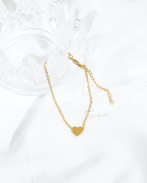 Mini Heart Bracelet, gelang dengan liontin berbentuk hati ukuran mini yang bisa ditambahkan ukiran tulisan inisial atau nama kamu dikedua sisi lion...