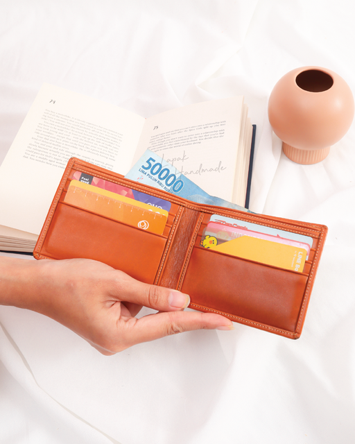 Bifold Wallet, dompet pria dengan desain klasik dan timeless. Terbuat dari pull up leather dengan slot kartu serta kompartemen uang kertas. Materia...