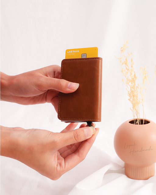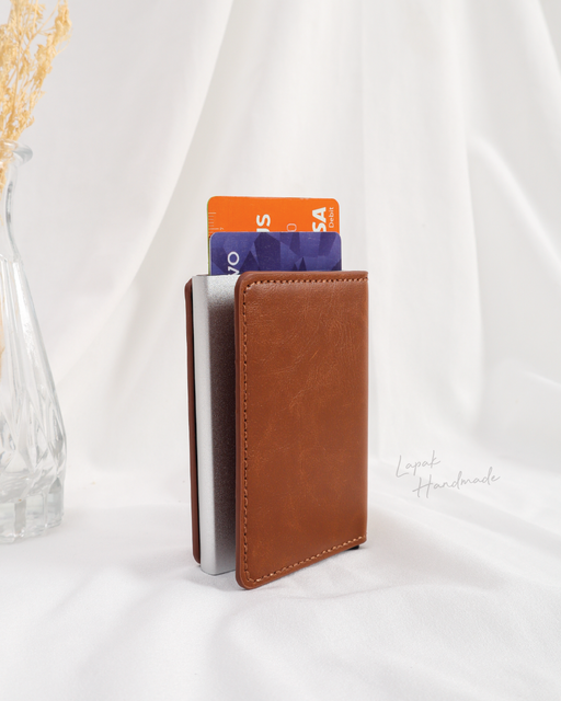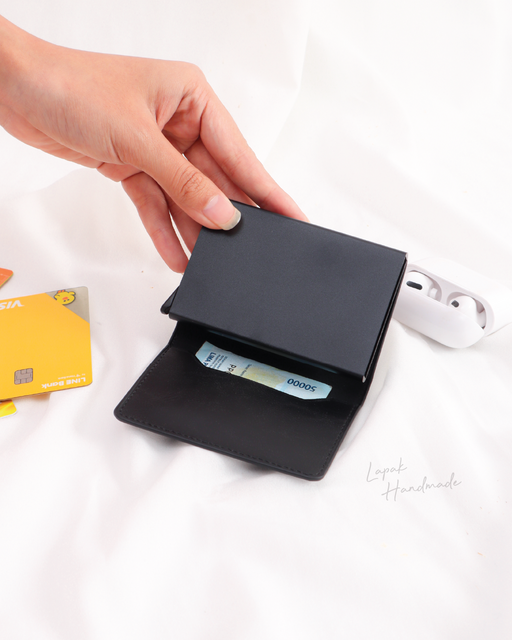 Slim Card Holder, dengan desain minimalis dan compact. Cukup menarik tuas untuk mengeluarkan kartu dari card holder. Terbuat dari faux leather, kul...