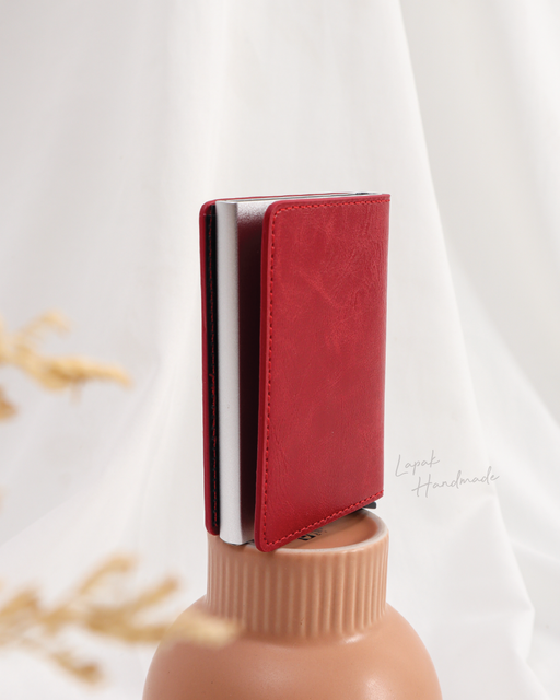 Slim Card Holder, dengan desain minimalis dan compact. Cukup menarik tuas untuk mengeluarkan kartu dari card holder. Terbuat dari faux leather, kul...