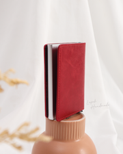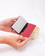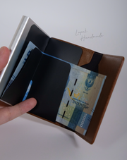 Slim Card Holder, dengan desain minimalis dan compact. Cukup menarik tuas untuk mengeluarkan kartu dari card holder. Terbuat dari faux leather, kulit sintetis berkualitas. Memiliki slot kartu berbahan aluminium anti RFID yang dapat memuat kartu hingga 6 lembar serta terdapat kompartemen uang kertas.